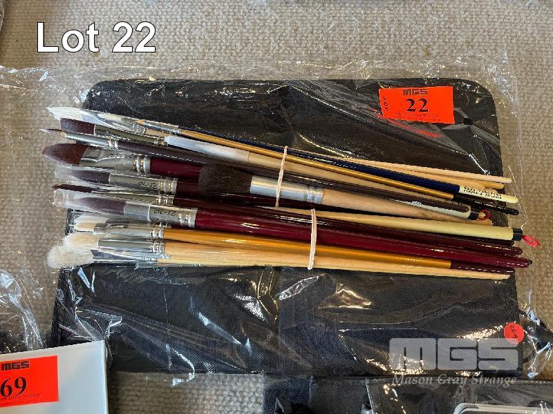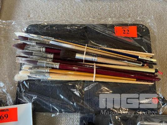 40 x ASSORTED ARTIST BRUSHES, SYNTHETIC & NATURAL HAIR WITH CARRY BAG