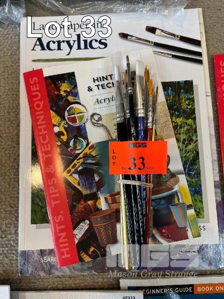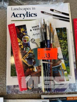 19 x ASSORTED ARTIST BRUSHES, SYNTHETIC, SABLE & TAKLON WITH INSTRUCTIONAL BOOKS