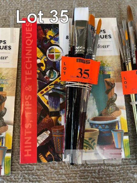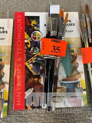 19 x ASSORTED ARTIST BRUSHES, SYNTHETIC, SABLE & TAKLON WITH INSTRUCTIONAL BOOK