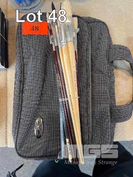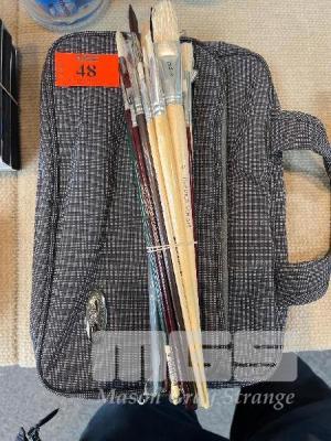 23 x ASSORTED ARTIST BRUSHES, SYNTHETIC & HOGS HAIR & CARRY BAG