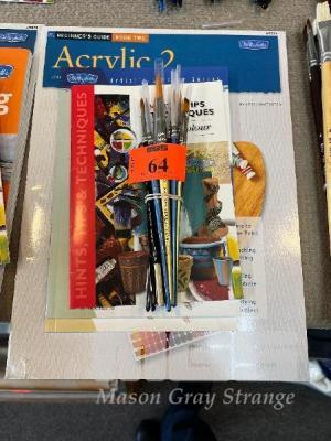 18 x ASSORTED ARTIST BRUSHES, SYNTHETIC & SABLE, WITH INSTRUCTIONAL BOOKS