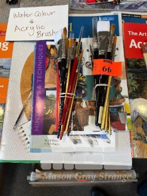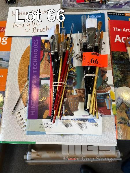 28 x ASSORTED ARTIST BRUSHES, GOLDEN NYLON, TAKLON & SABLE WITH INSTRUCTIONAL BOOKS