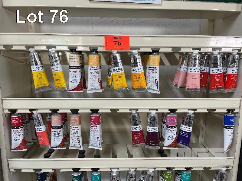 87 x ASSORTED STUDENT OIL COLOURS, 37ml, WINSOR & NEWTON / DALER ROWNEY WITH DISPLAY RACK