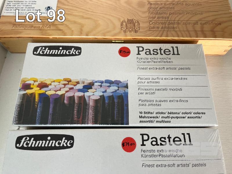 2 x 10 COLOUR SCHMINCKE PASTEL SETS WITH WOODEN CARRY CASE
