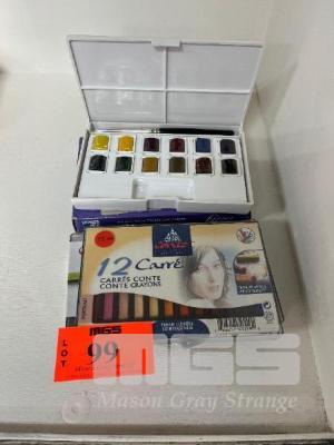 12 PAN WATER COLOUR SET, 2 x CONTE CRAYON SETS