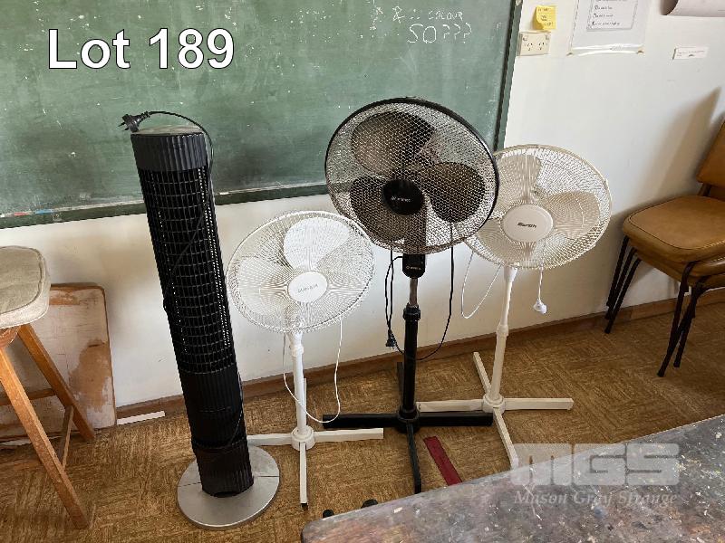 SINGLE DOOR FRIDGE & KETTLE, 4 x PEDESTAL FANS