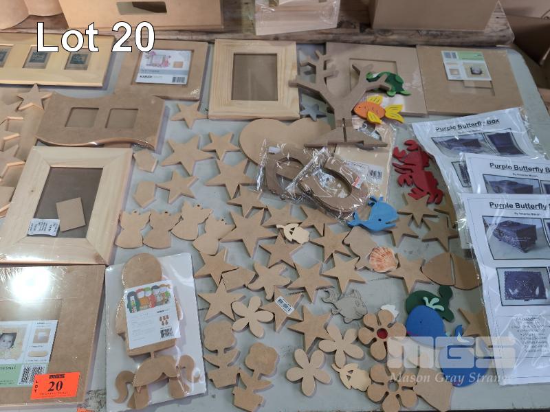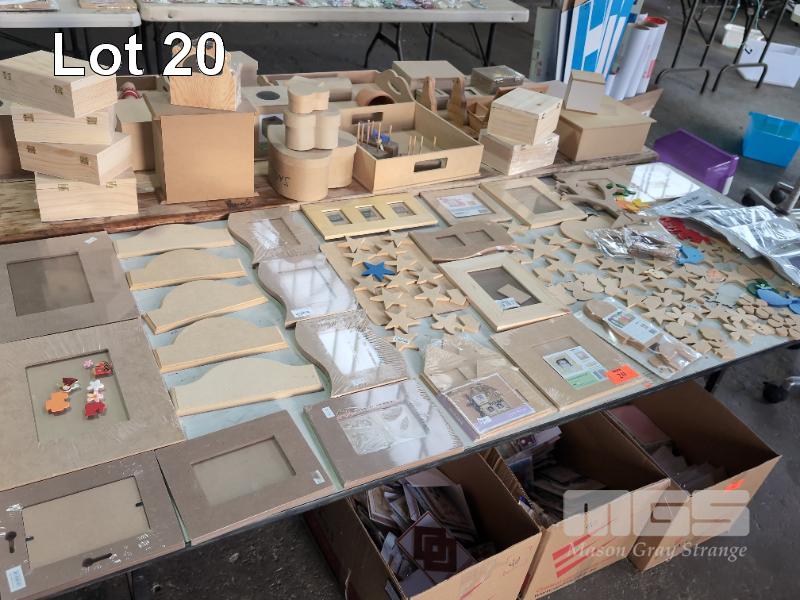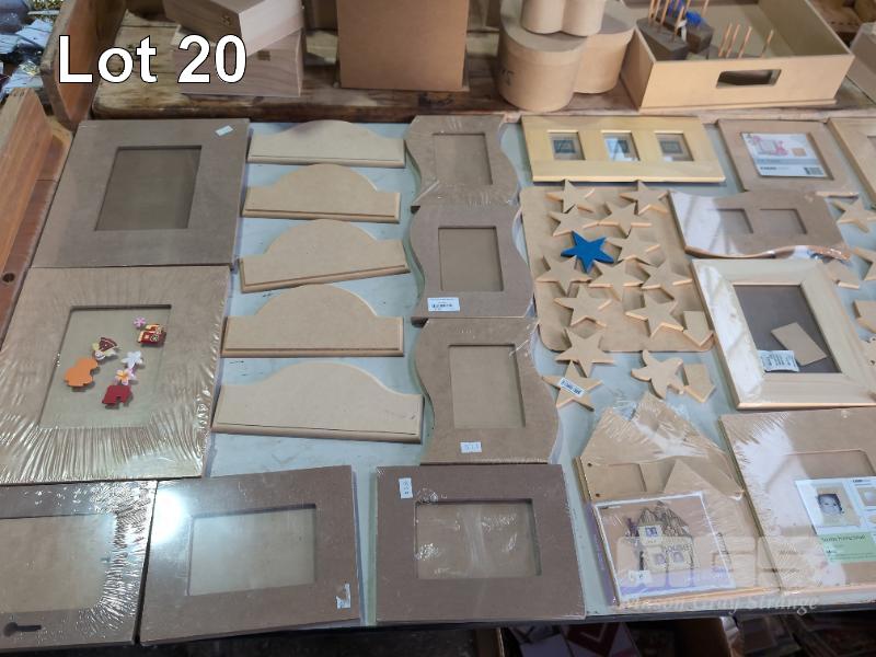 100 (APPROX) X BLANK WOODEN FRAMES, BOARDS & SHAPES FOR DECOUPAGE, PAINTING ETC. 1 X TABLE.