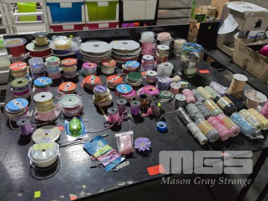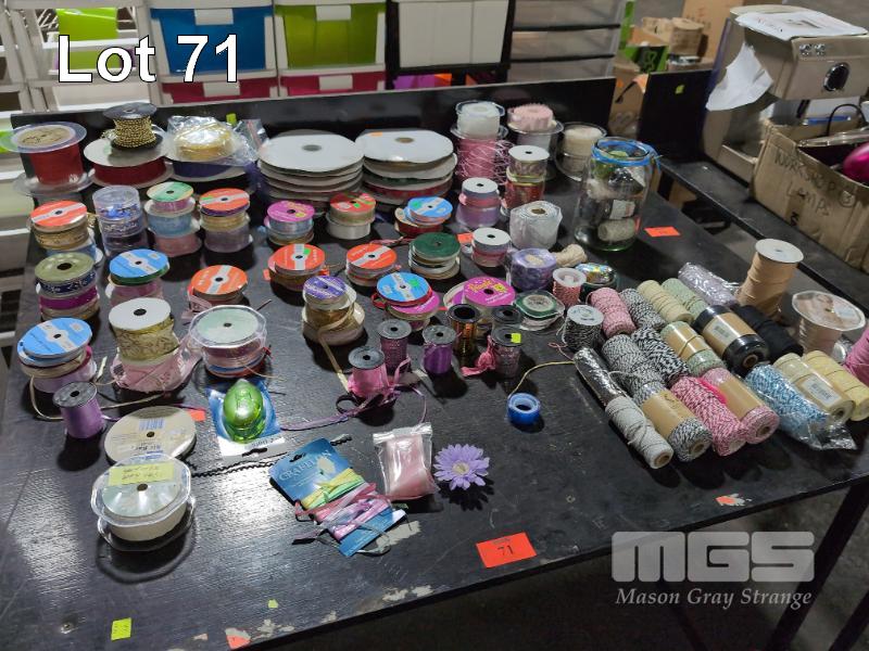 ASSORTED RIBBON REELS AND TWINE. 1 X TABLE.