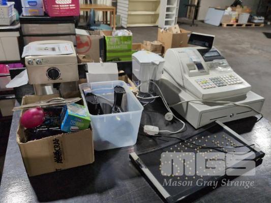 SAM4S ELECTRONIC CASH REGISTER MODEL ER-420M AND ASSORTED ELECTRICAL. 1 X TABLE.