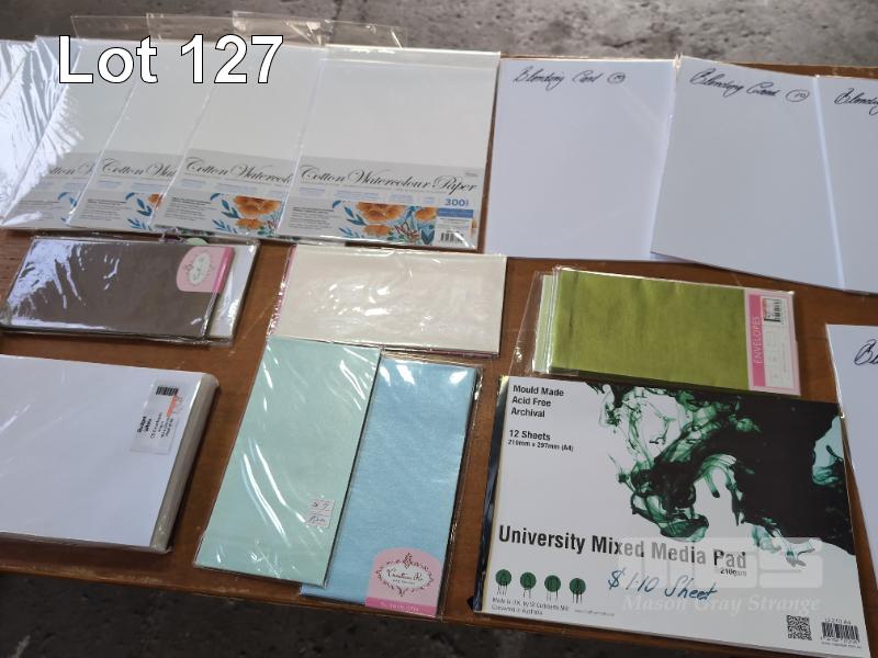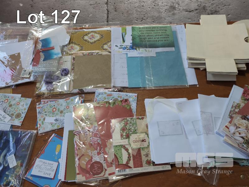 ASSORTED INCOMPLETE CRAFT PROJECTS AND SPECIALITY PAPERSCARDS, ENVELOPES ETC. 2 X BOXES.