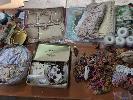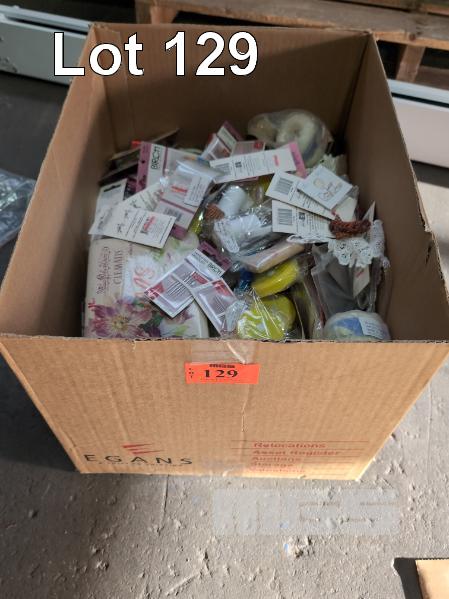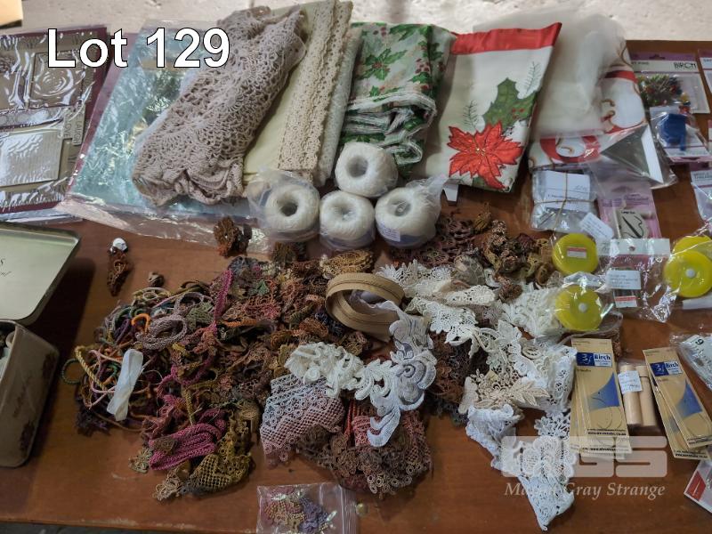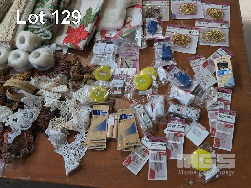 ASSORTED NEEDLE & THREADS & ASSORTED SEWING PRODUCTS INCLUDING FABRICS, LACE, BUTTONS ETC. 1 X BOX.