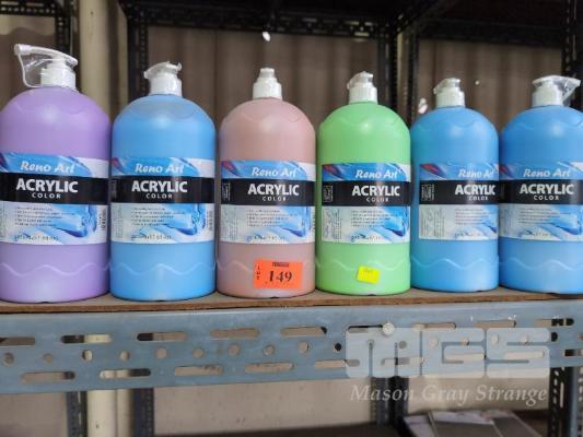 6 X RENO ART ACRYLIC PAINT 2.0 LITRE. ASSORTED COLOURS.