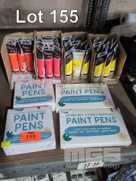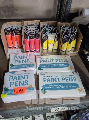 4 X BONDI ART PAINT PENS SETS. 40 X RENO ART FLOURESCENT PAINT TUBES 75 ML. ASSORTED COLOURS