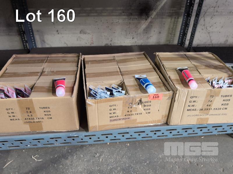 3 X CARTONS OF 75 UNITS EACH RENO ART FLOURESCENT PAINT TUBES 75 ML. ASSORTED COLOURS.
