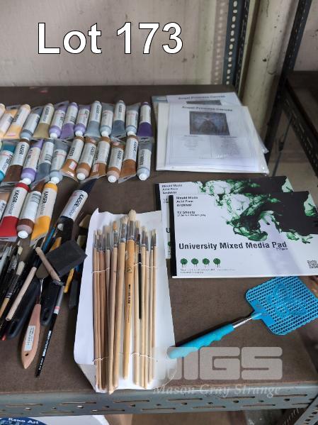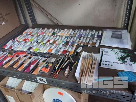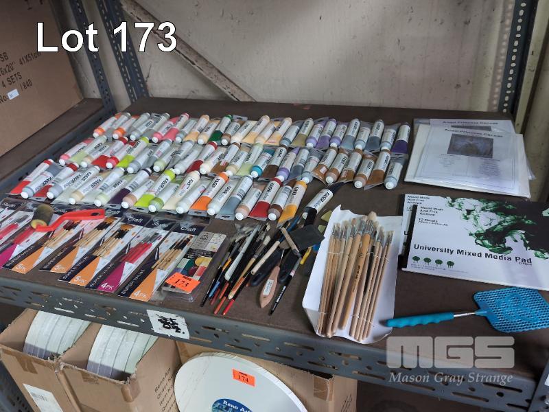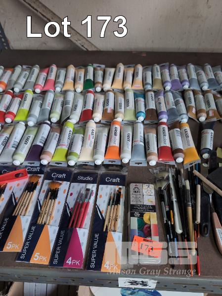 KAISER ACRYLIC PAINTS. PAINT BRUSHES AND OTHER ART SUPPLIES. 1 X BAY.