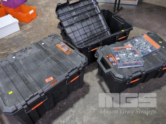 2 X TACTIX 135 LITRE STORAGE BOXES WITH LIDS.