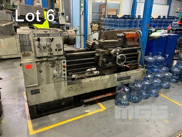 ECOCA CENTRE LATHE, MOD: SJ-1840C, 415V, 7.5hp, 50mm BORE, 900mm BC, 500mm SWING GAP BED, WITH DRO, 230mm (D) JAW CHUCK, CAM LOC, 300mm (D) 4 JAW CHUCK, CAM LOC, 400mm FACE PLATE ,NO TOOL POST. CONDITION UNKNOWN.