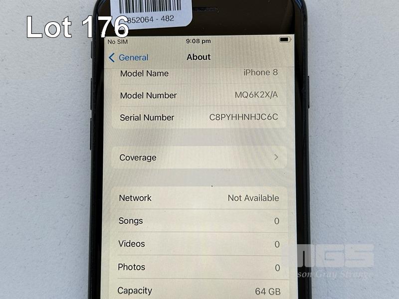 APPLE iPHONE 8, 64GB, SPACE GREY, MODEL MQ6K2X/A, BATTERY HEALTH 84% (NO CABLE, NO CHARGER) S/N:C8PYHHNHJC6C