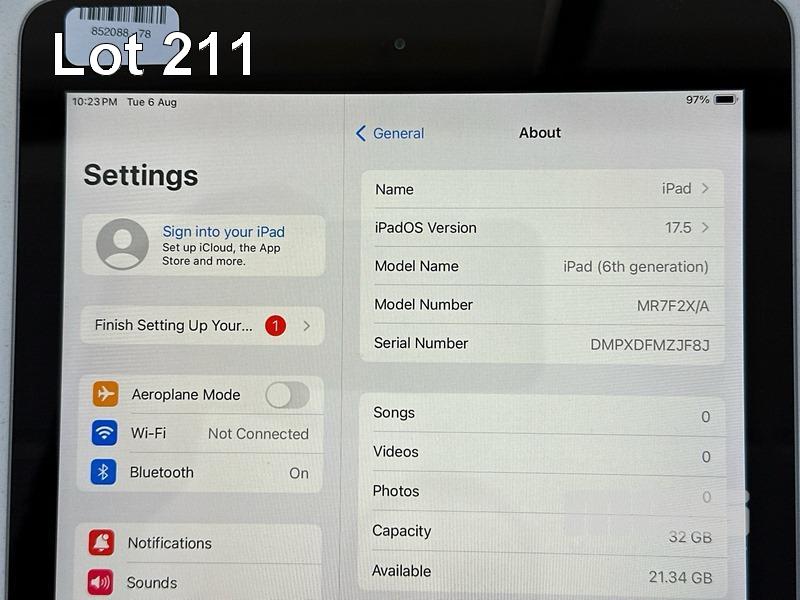 APPLE iPAD 6TH GEN, 32GB, Wi-Fi, SPACE GREY, MODEL MR7F2X/A, A1893 (NO CABLE, NO CHARGER) (NOTE: MINOR DAMAGE) S/N:DMPXDFMZJF8J