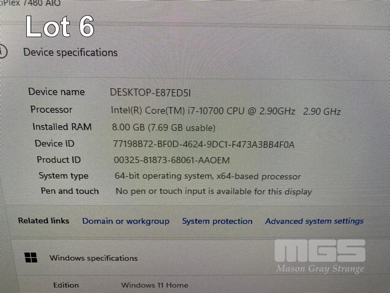ALL-IN-ONE PC, DELL OPTIPLEX 7480, CORE i7 10700 (10TH GEN) @ 2.9GHz, 8GB DDR4 RAM, 512GB NVMe M.2 SSD, INBUILT 23.8" FHD WIDESCREEN (1920x1080), INTEL HD VIDEO, WEBCAM, 5 x USB, 1 x USB-C, WINDOWS 11 HOME INSTALLED, KEYBOARD & MOUSE S/N:D9ZCX53