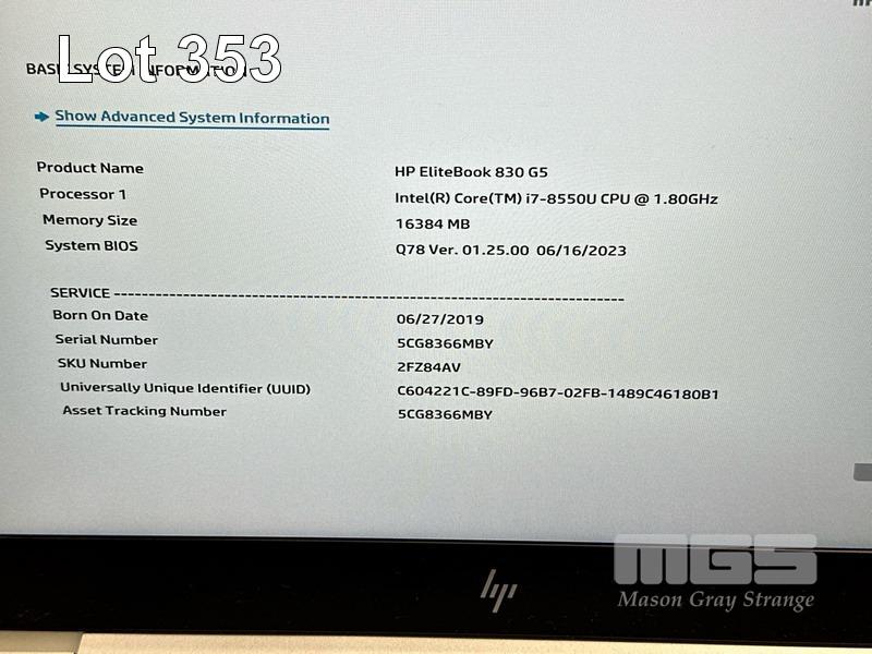LAPTOP, HP ELITEBOOK 830 G5, CORE i7 8550U (8TH GEN) @ 1.8GHz, 16GB DDR4 RAM, 512GB NVMe M.2 SSD, 13.3" WIDESCREEN (1920x1080), INTEL UHD GRAPHICS 620, Wi-Fi, BLUETOOTH, WINDOWS 10 PRO INSTALLED (NO POWER SUPPLY) (NOTE: MARKS ON SCREEN) S/N:5CG8366MBY