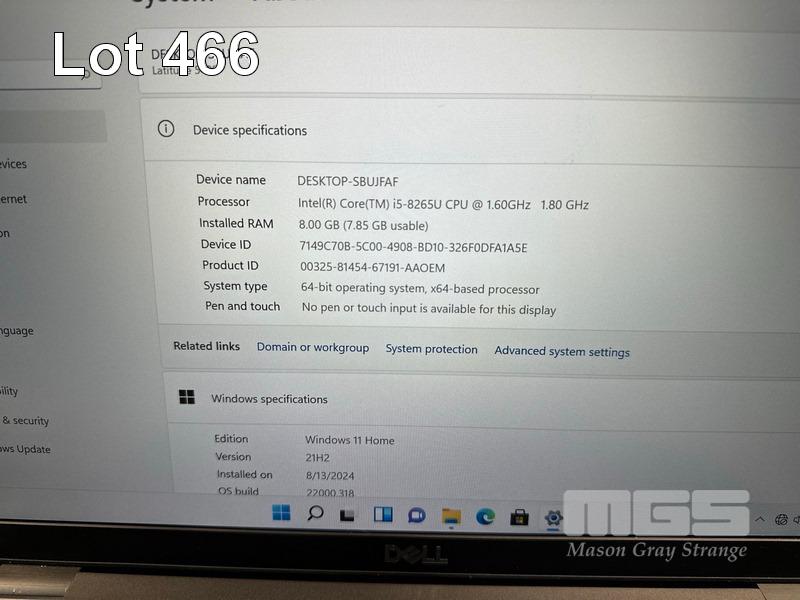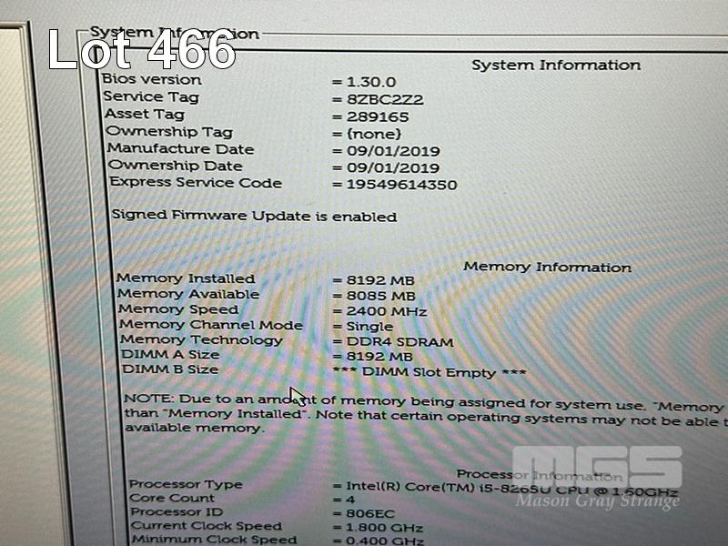 LAPTOP, DELL LATITUDE 5400, CORE i5 8265U (8TH GEN) @ 1.6GHz, 8GB DDR4 RAM, 512GB NVMe M.2 SSD, 14" WIDESCREEN (1920x1080), INTEL UHD GRAPHICS 620, Wi-Fi, BLUETOOTH, WINDOWS 11 HOME INSTALLED & POWER SUPPLY (NOTE: SWOLLEN BATTERY, MINOR MARKS ON SCREEN) S/N:8ZBC2Z2