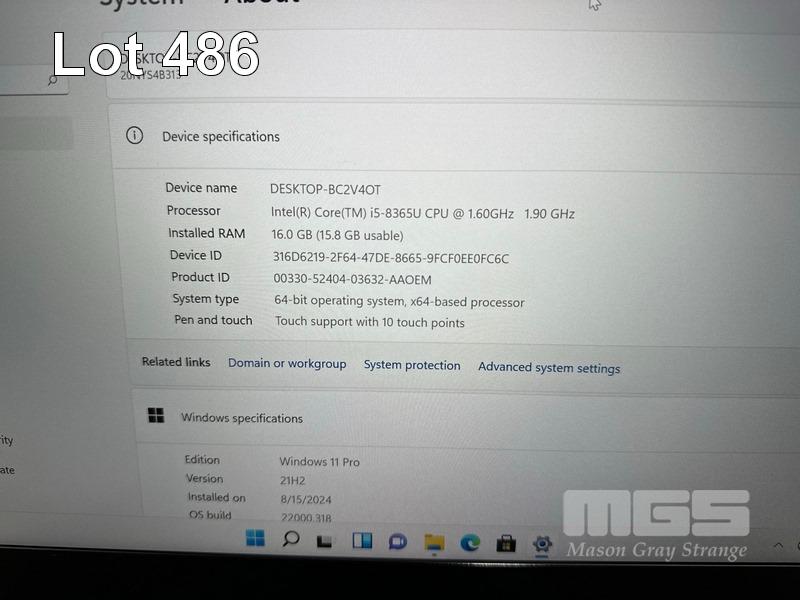 LAPTOP, LENOVO THINKPAD T490s, TYPE 20NY, CORE i5 8365U (8TH GEN) @ 1.6GHz, 16GB DDR4 RAM, 256GB NVMe M.2 SSD, 14" TOUCHSCREEN (1920x1080), INTEL HD VIDEO, Wi-Fi, BLUETOOTH, WINDOWS 11 PRO INSTALLED (NO USB-C POWER SUPPLY) (NOTE: MARKS ON SCREEN) S/N:PC1B4SWV