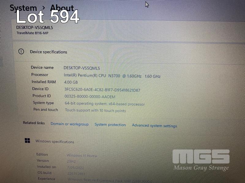 LAPTOP, ACER TRAVELMATE B116-MP, PENTIUM N3700 @ 1.6GHz, 4GB DDR3 RAM, 128GB SSD, 11.6" TOUCHSCREEN (1366x768), INTEL HD GRAPHICS, Wi-Fi, BLUETOOTH, WINDOWS 11 HOME INSTALLED & POWER SUPPLY S/N:NXVBHSA0025490B8097600