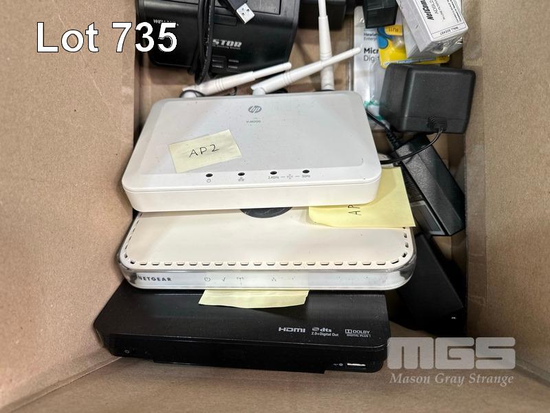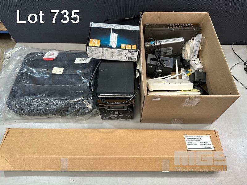 QTY NETWORKING & IT SUNDRIES INC. - D-LINK DES-1016D & DES-1008D SWITCHES - HP VM-200 J9468A ACCESS POINT - WD TV LIVE HUB MEDIA CENTER - NETGEAR ACCESS POIONT - NETCOMM 3G WIRELESS N150 ROUTER - WELLAND EZSTOR HDD DOCK (NO POWER SUPPLY) - POWERSHEILD DEFENDER 1200 UPS (FAULTY) - TARGUS LAPTOP BAG - HP SERVER RACKMOUNT RAILS, ETC