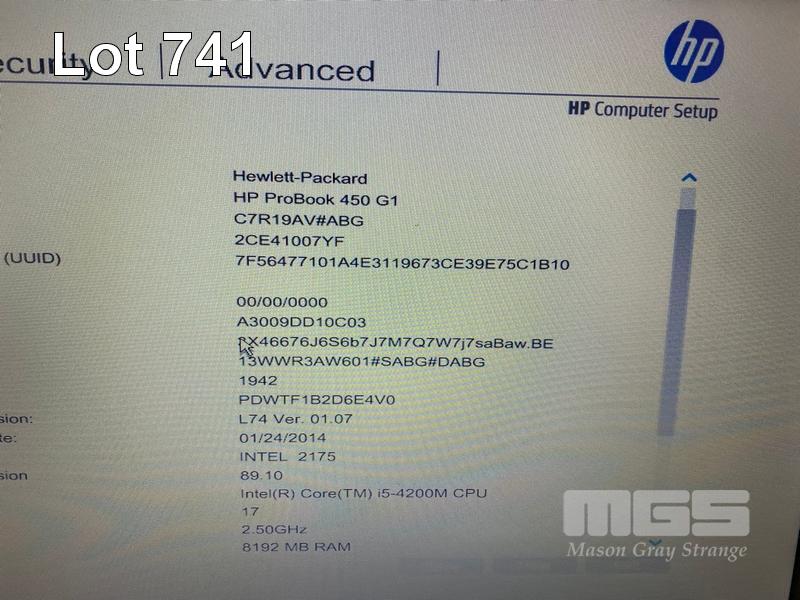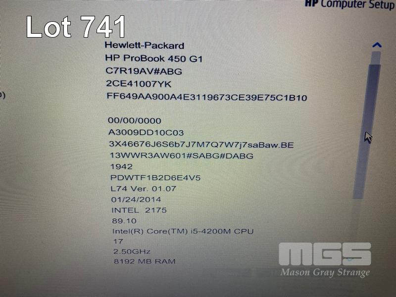 6 x LAPTOPS INC. - HP PROBOOK 450 G1, CORE i5 4200M @ 2.5GHz, 8GB RAM, 320GB SATA HDD (NOTE: 1 x MISSING "Q" KEY, 1 x MISSING "ESC" KEY, 1 x MISSING "HOME" KEY) (WITH POWER SUPPLIES) S/N:2CE41007YD, 2CE41007YF, 2CE41007Y9, 2CE41007YK, 2CE41007Y6, 2CE41007YH