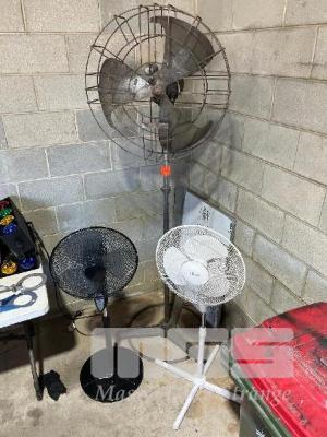 OLD SCHOOL PEDESTAL FAN & 2 x SMALL PEDESTAL FANS