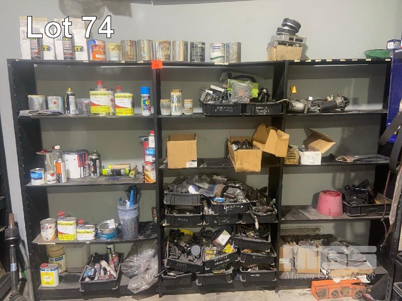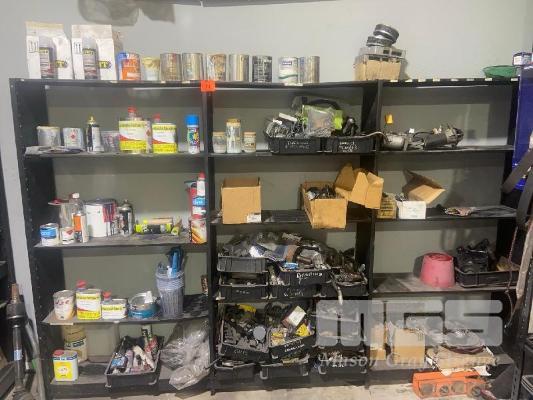 STEEL SHELVING & CONTENTS ENGINE PARTS, PAINT, ETC