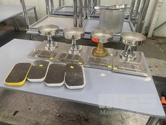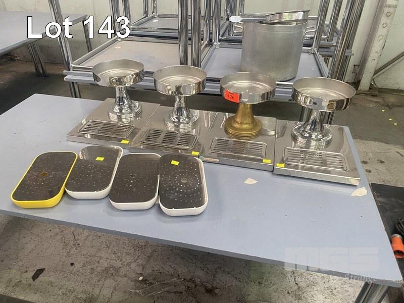 4 X LIQUID DISPENSER STANDS & DRAIN DISHES