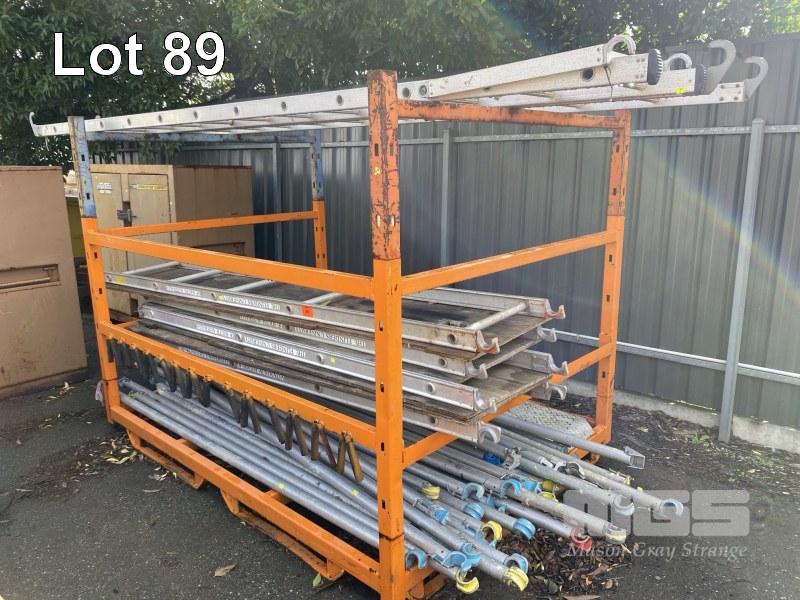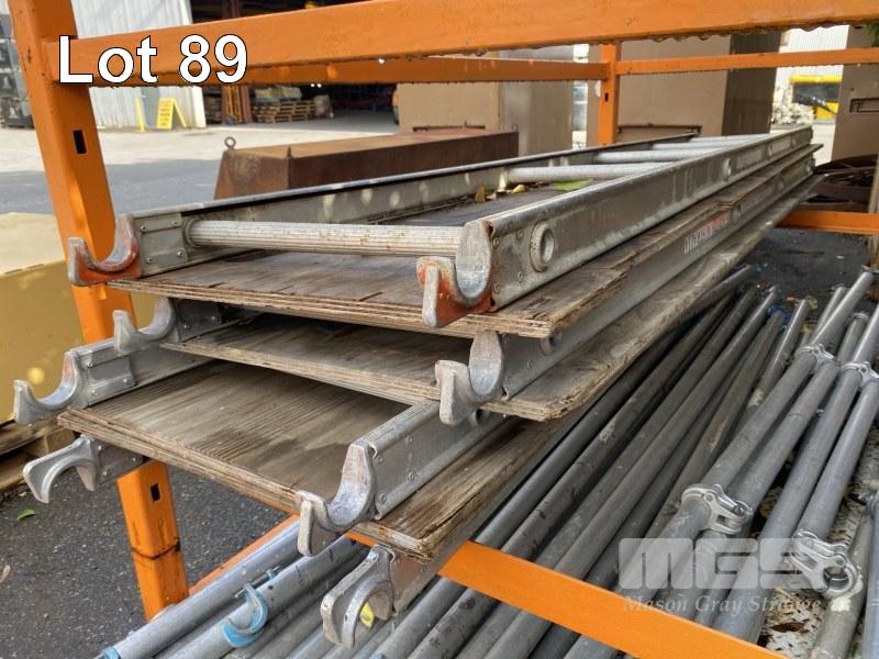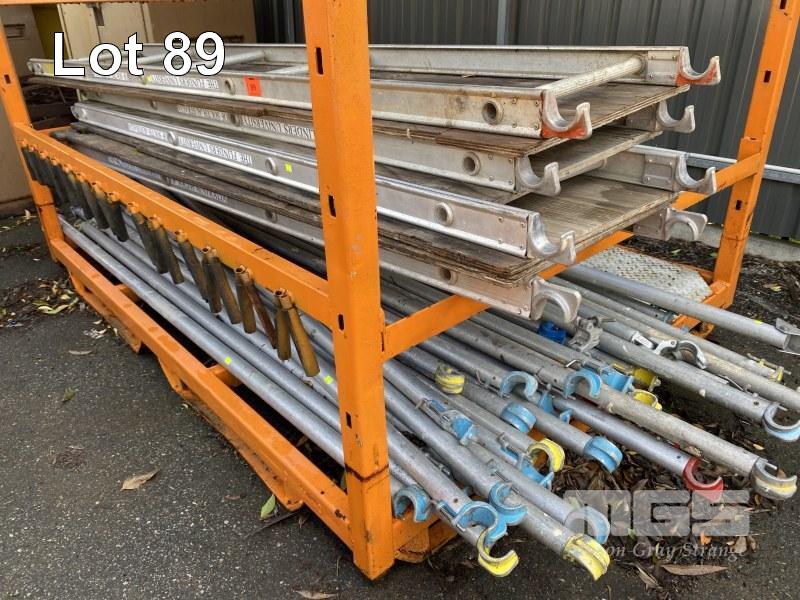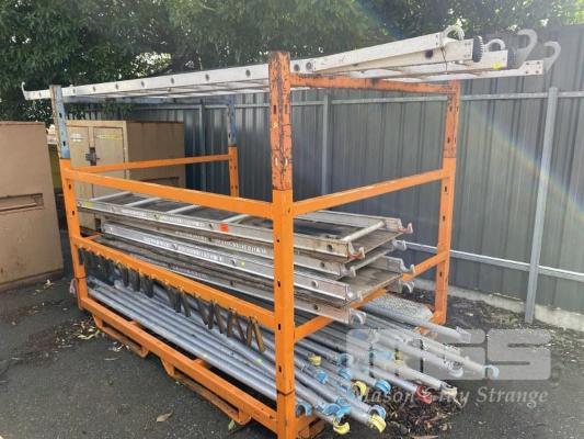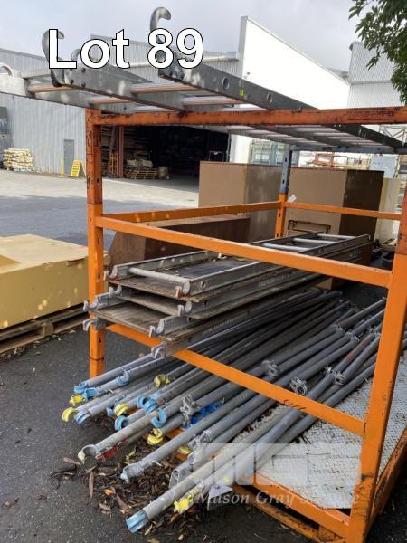 ALLOY SCAFFOLDING COMPRISING 30 (APPROX) x UPRIGHTS, CROSS BEAMS, BRACING BARS & 3 x WALKWAYS, 2500 & 3000mm & 1 x LADDER, 3800mm