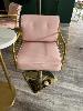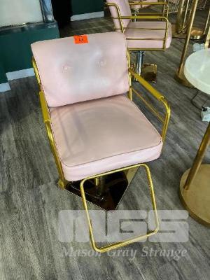 2 x GAS LIFT SALON CHAIRS, GOLD STEEL FRAME, PINK VINYL
