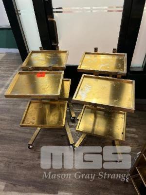 4 x SALON INSTRUMENT TROLLEYS, 2 TIER, GOLD STEEL FRAME