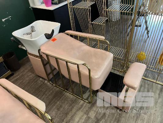 SALON HAIR WASH STATION, GOLD FRAME, PINK VINYL