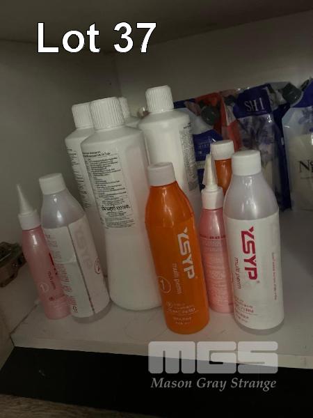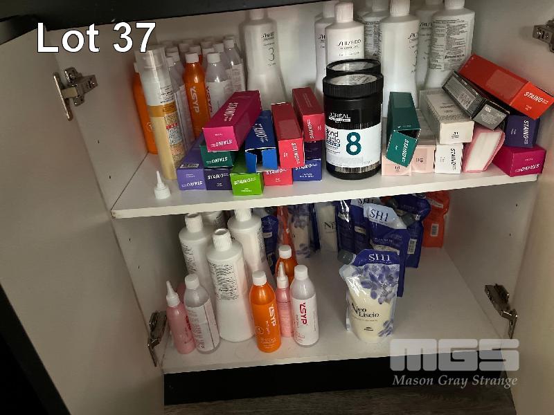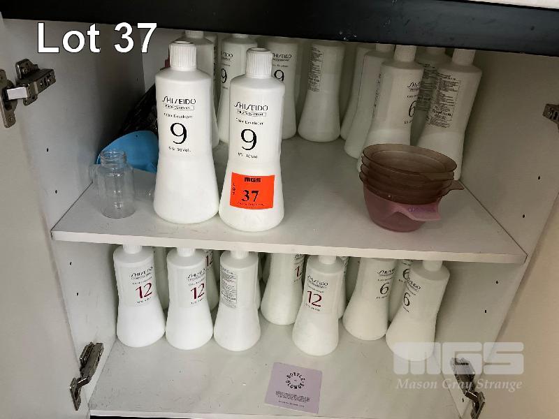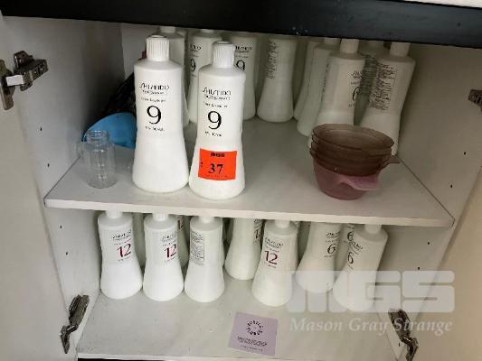 CONTENTS UNDER BENCH CUPBOARDS, LARGE QUANTITY ASSORTED HAIR PRODUCT, 37 x SHISEIDO COLOUR DEVELOPMENT, STAINO HAIR COLOUR, NEO LISCIO HAIR STRAIGHTENING PRODUCT