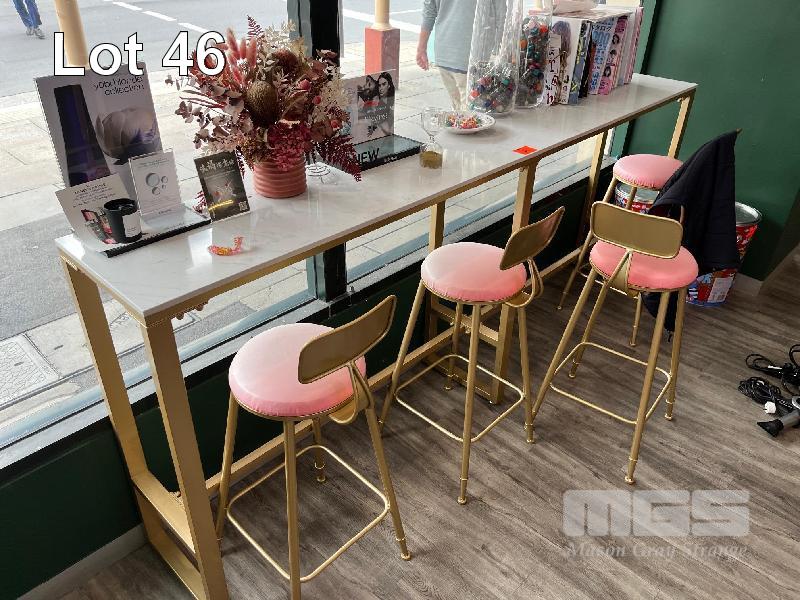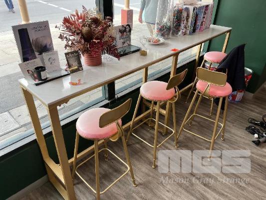 DRY BAR, GOLD STEEL FRAME, ARTIFICIAL STONE TOP, 2600 x 400 x 1060mm (H)