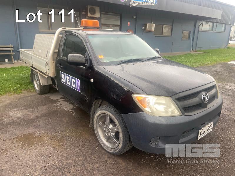 2006 TOYOTA HILUX TGN16R-TRMDKQ3 SINGLE CAB UTE 2WD REG: XJG 692 (SA) VIN: MROCX12G600013698 ODO: 264,053 4CYL 2.7L, MANUAL, PETROL, BLACK, 2 DOORS, 3 SEAT, 2WD ALLOY TRAY, ALLOY WHEELS, TOOL BOX, TOW BAR, NOTE: BLOWING WHITE SMOKE (NO PAPERS, WITH 1 KEY/S, NO OWNER'S MANUAL, NO SERVICE BOOKS) CONDITION: DRIVERS DOOR - DAMAGED