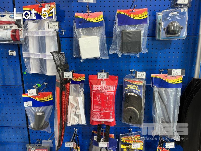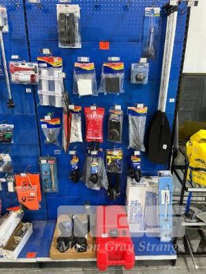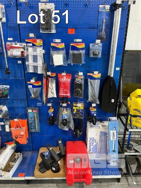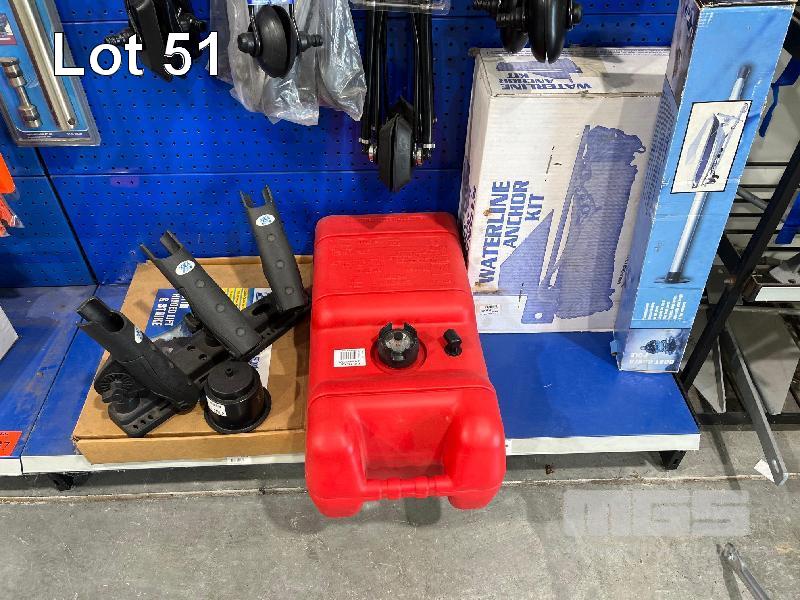 LARGE QTY MARINE ACCESSORIES & SPARES, PADDLES, FISHING ROD HOLDERS, 23L FUEL TANK, TWIN INTAKE MOTOR FLUSHERS, ANCHOR KIT ETC. (CONTENTS 1 SHADOW BOARD)