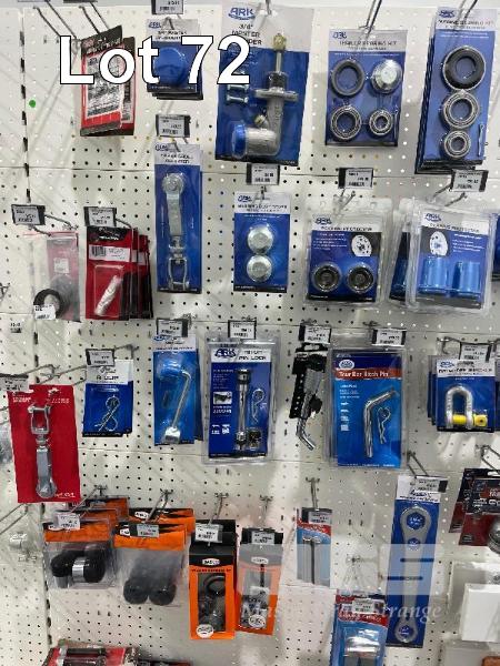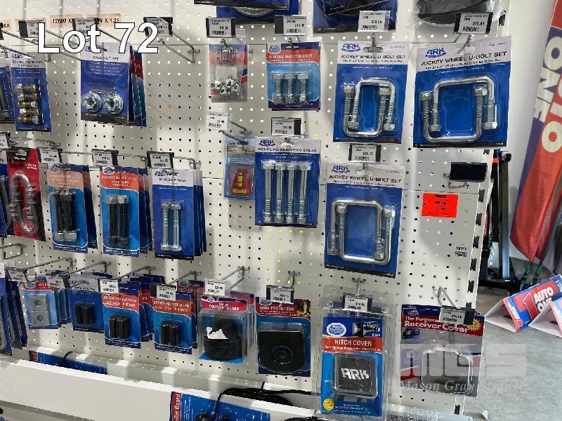 LARGE QTY TRAILER SPARES & PARTS, LEAF SPRINGS, WHEEL STUDS, BRAKE KITS, SHACKLES, BOLTS, TOW BALLS ETC. (CONTENTS OF 2 SHADOW BOARDS)
