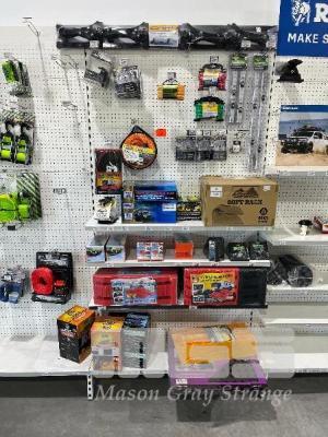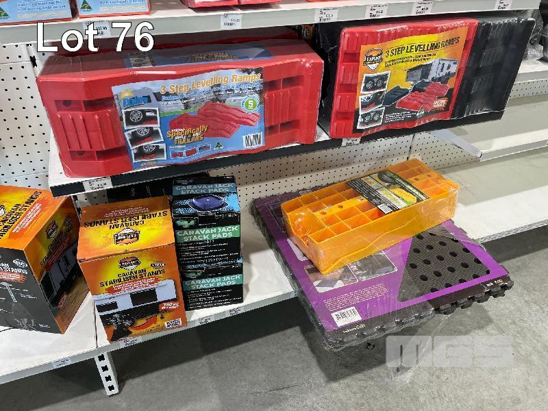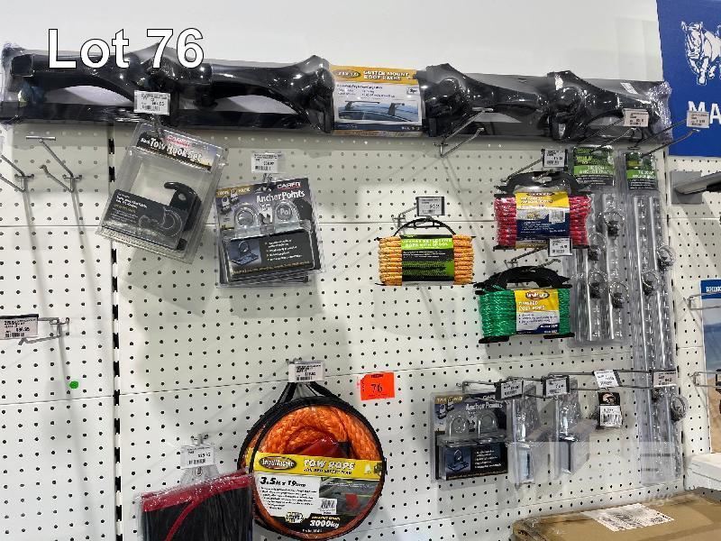 LARGE QTY 4x4 & CARAVAN ACCESSORIES, ROOF RACKS, ANCHOR POINTS, TOW ROPE, 4x4 SERVICE KIT, LEVELLING RAMPS, CARAVAN STABILISER STANDS ETC. (CONTENTS OF 1 SHADOW BOARD)