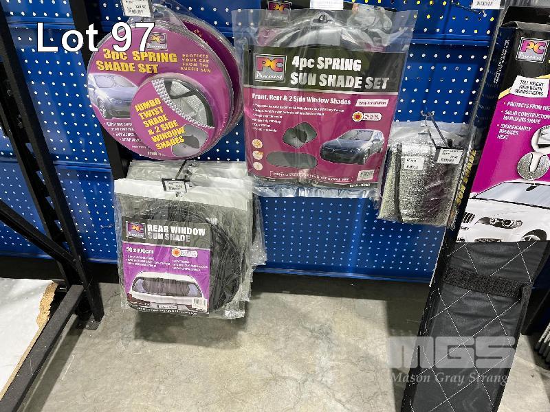 LARGE QTY SUNSHADES, ASSORTED SIZES & DESIGNS