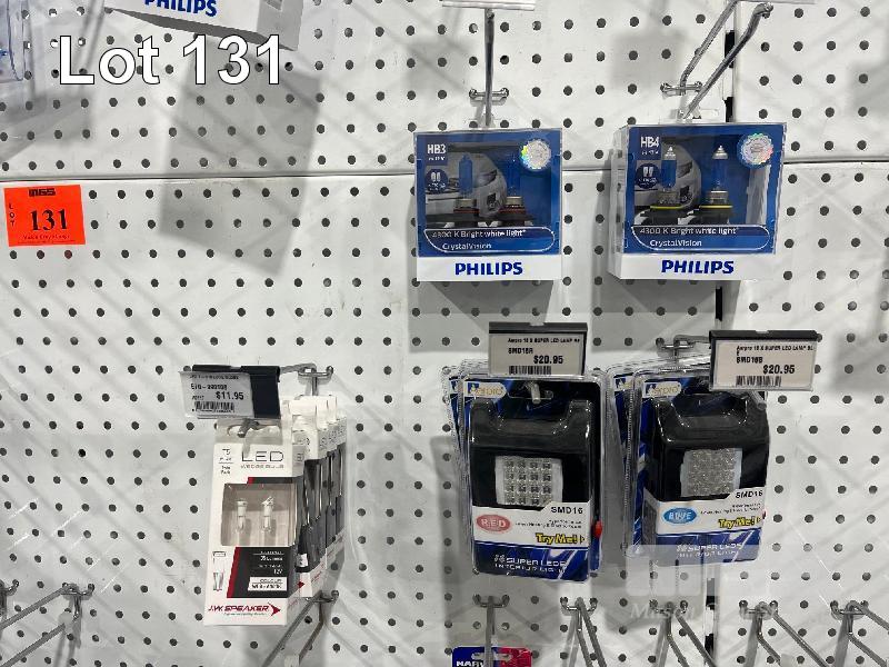 LARGE QTY ASSORTED HEAD LIGHT GLOBES, LED & HALOGEN (CONTENTS OF 1 SHADOW BOARD)