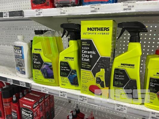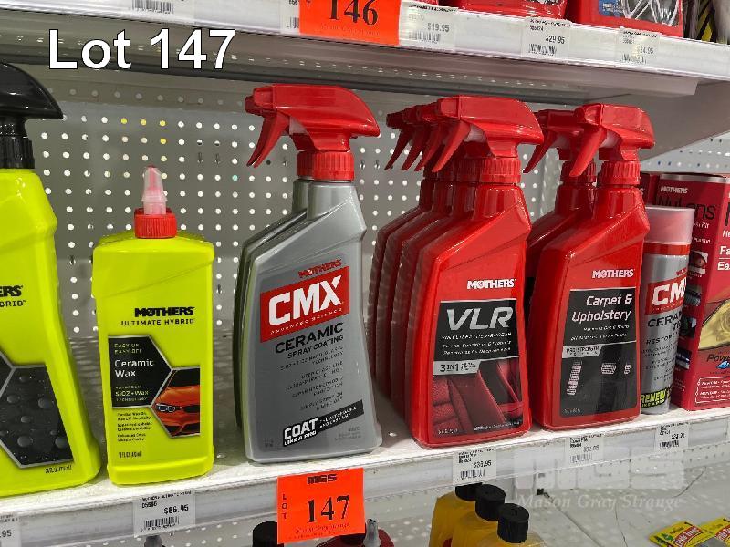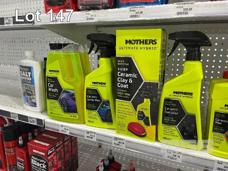 QTY MOTHERS CAR CLEANING PRODUCTS: CAR WASH, CERAMIC SPRAY WAX, CERAMIC DETAILER, INTERIOR CLEANER, HEADLIGHT RENEWAL KIT, ETC. (CONTENTS OF 1 SHELF)
