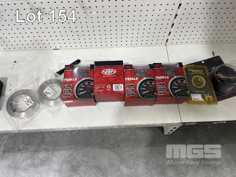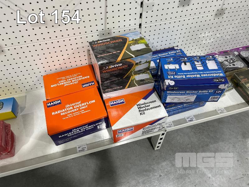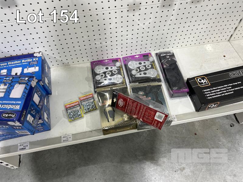 FLUFFY DICE, CHUNKY SEATBELT BUDDY, BUG EXTERMINATOR, BOOT ORGANISER, STEERING WHEEL LOCK, GEARBOX MODELS, WINDSCREEN WASHER BOTTLS, WARNING TRIANGLE SET, CHOKE CABLES, VARIOUS GUAGES, ASSORTED BRASS FITTINGS, ETC. (CONTENTS OF AISLE)