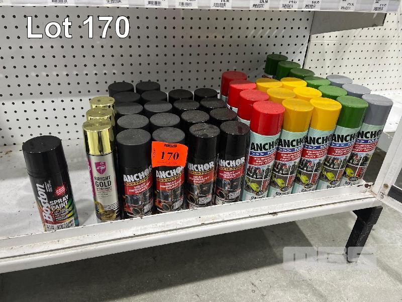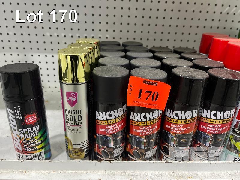 ASSORTED AUTOMOTIVE AEROSOLS, HEAT RESISTANT PAINT, INDUSTRIAL PAINT, GOLD PAINT, ETC. (CONTENTS OF 1 SHELF)