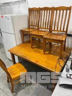 TIMBER DINING TABLE, 1500 x 1000mm WITH 4 CHAIRS