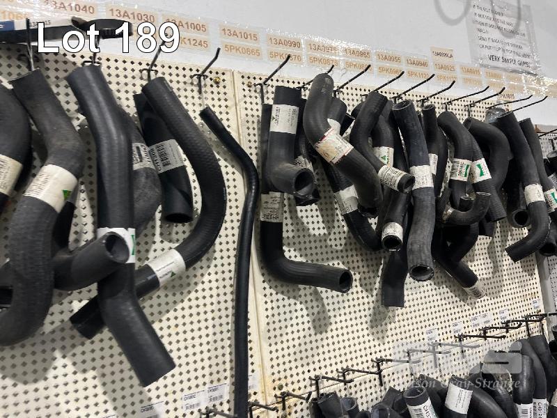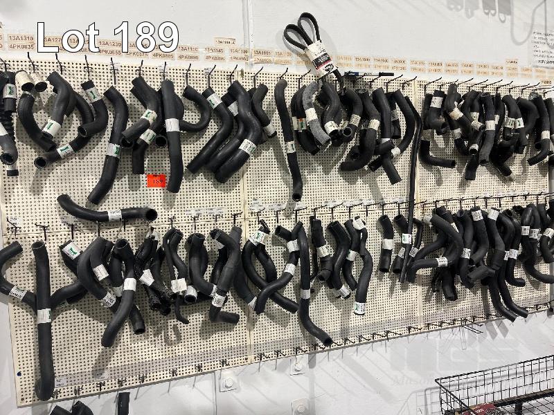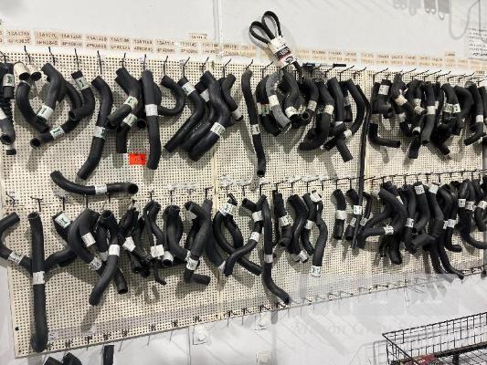 LARGE QTY ASSORTED RADIATOR HOSES, WALL MOUNT SHADOW BOARD INCLUDED, 2600 x 1200mm